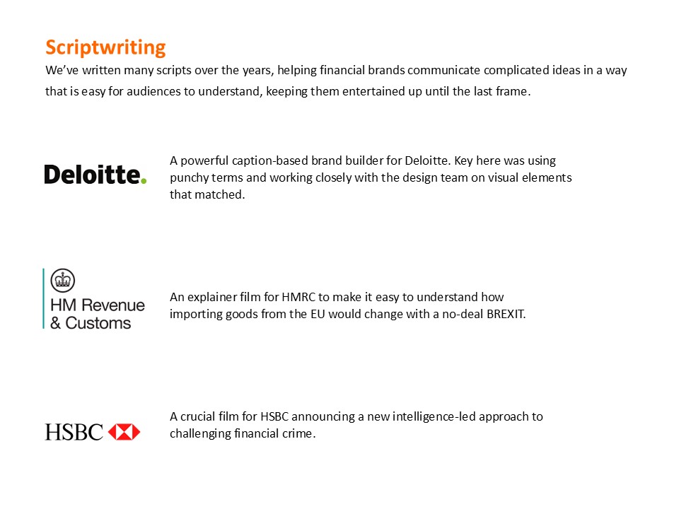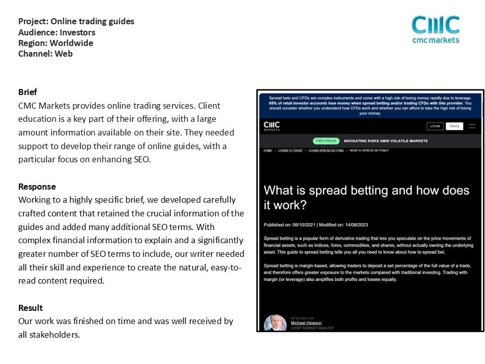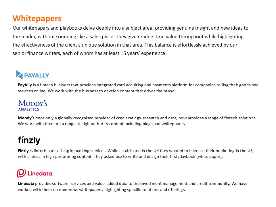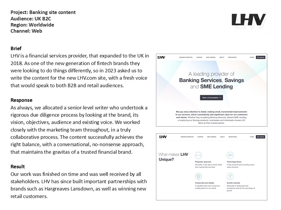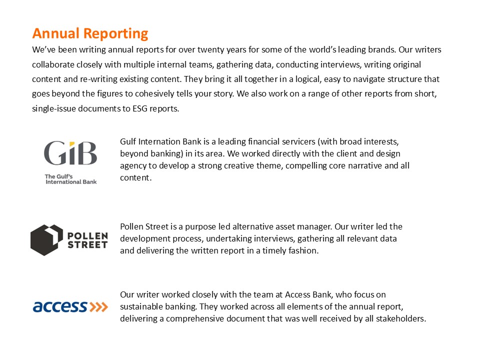 We've worked with some of the world's biggest brands, most creative agencies and disruptive start-ups. The copywriting samples here are a small sample of our work. If you're looking for something specific, just let us know, we've probably done it. To read some work, scroll down to the bottom, where you can view articles, whitepapers, annual reports and more.
